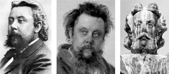 Мусоргский. Слева направо – фото, портрет работы