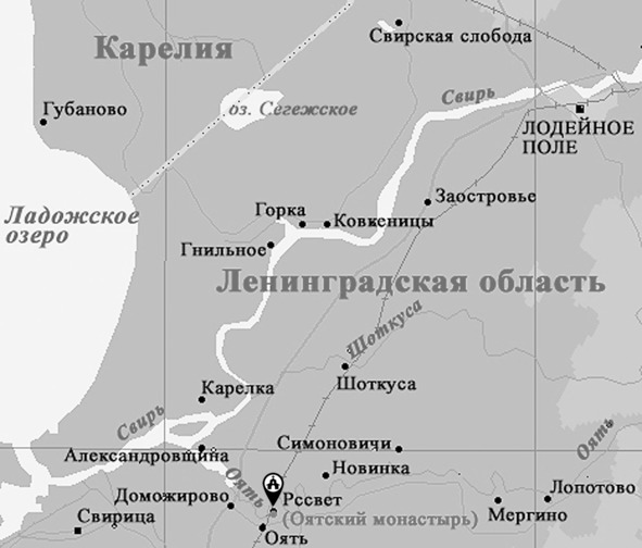 Оятский дух и сегодня влечет к себе толпы паломников. По наивности люди считают, что приезжают в монастырь. Но тянет-то их не монастырь, а чудесный источник, в котором живет дух Ояти. Монастырь к источнику пристроен лишь сбоку – для ухода за духом и его материальным телом, источником. Когда обитель закрыли, источник заглох. А в 1991 году сюда (на карте место называется Рассвет) приехала Лидия Коняшева и не смогла уехать. Что-то ее тут держало. Начала хлопотать, добилась возобновления монастыря, стала его настоятельницей, матушкой Феклой.