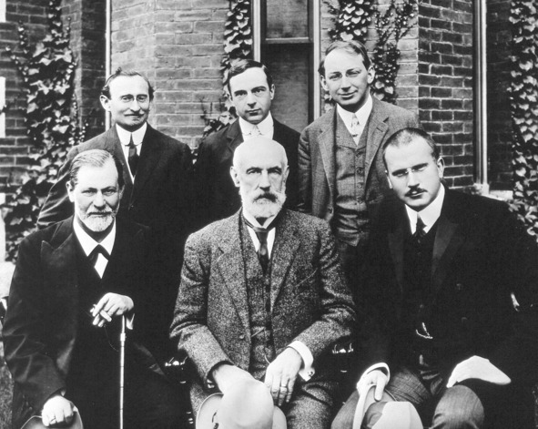 В Университете Кларка. Сидят: Зигмунд Фрейд, Грэнвилл Холл, Карл Юнг; стоят: Эбрахам А. Брилл, Эрнест Джонс,