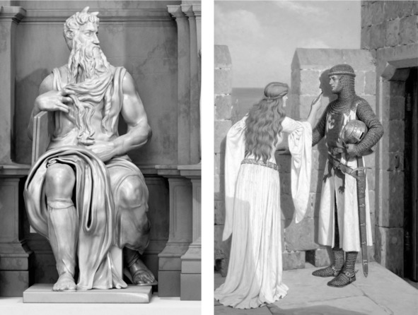 Слева Моисей работы Микеланджело (этой статуе Фрейд посвятил специальную статью, опубликованную поначалу анонимно, последняя большая работа Фрейда также была о Моисее).