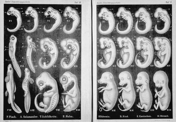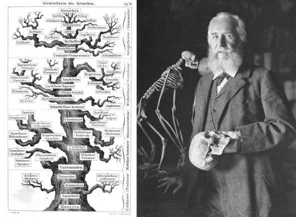 Справа Эрнст Геккель, слева его филогенетическое древо