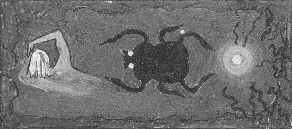 Юнг хочет положить камень на место, но не успевает: поток прорывается наружу и это – кровь. То есть камень (держим в уме все прочие юнговские камни) – это пробка, закрывающая какой-то вход (ее дубликат – карлик у входа в пещеру). Упругая струя бьет из щели, Юнгу тошно. Когда видение завершилось, он понял, что в его основе – «некий солярный героический миф, драма смерти и возрождения, которое символизировал египетский скарабей. Все должно было завершиться рассветом – наступлением нового дня, но вместо этого хлынул кошмарный поток крови, очевидная аномалия. Вспомнив кровавый поток, виденный осенью, я отказался от попыток объяснить это».