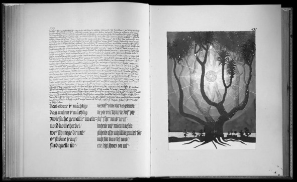 Разворот «Красной книги». Он не имеет прямого отношения к сюжету об убийстве, я выбрал эту картинку потому, что на ней есть и дерево, и мандала: круг в ветвях дерева