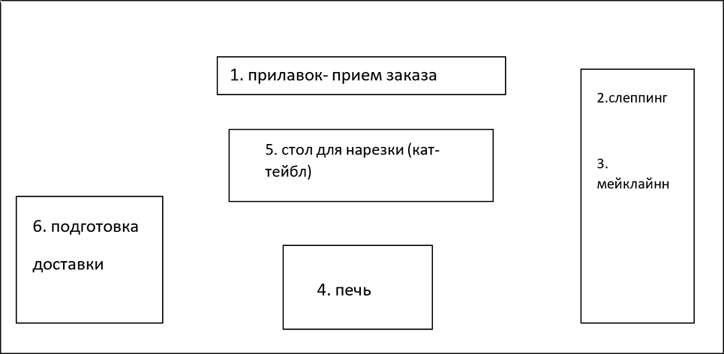 3. В некоторых пицца-предприятиях отдельно выделяется небольшой стол для нанесения соуса – позиция нанесения соуса.