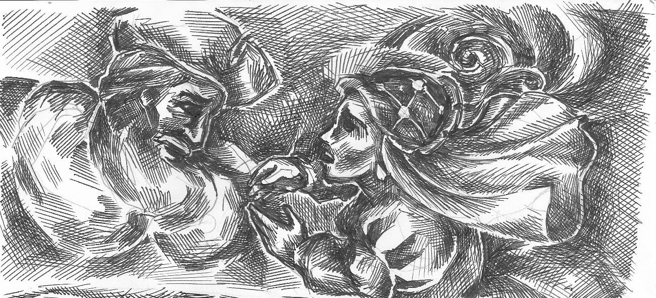Её муж лежал в объятиях золотоволосой демонессы на покрытом шелками ложе, они оба спали. Гнев и ревность поднялись в душе женщины, но вдруг она увидела, что роскошные золотые волосы шеды лежат на полу. В этот миг в душе женщины проснулась жалость к сопернице: та сама была в этом мире как её роскошные волосы, лежащие в пыли на холодном полу. Постояв немного над ложем, женщина тихонько взяла стул, придвинула его к ложу, положила на него тяжёлые золотые волосы, и побрела домой.