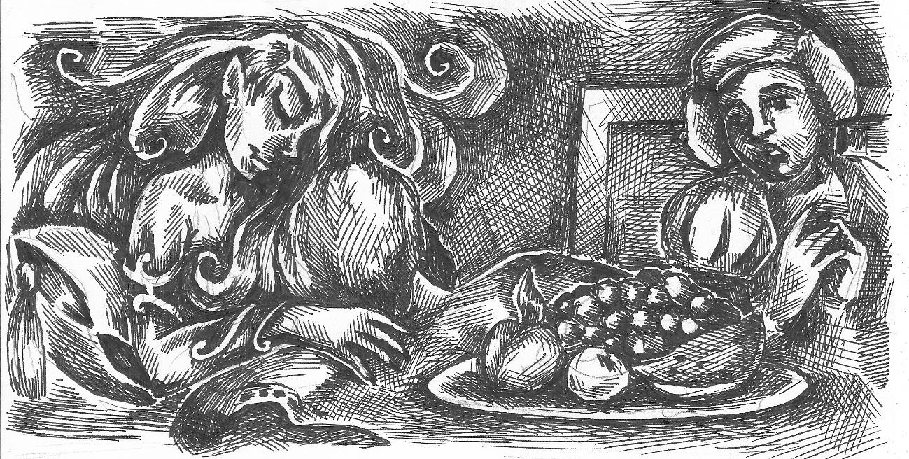 А однажды, когда все жильцы сели за общий стол, кто-то невидимый сдёрнул на пол скатерть вместе со всем, что стояло на столе.
