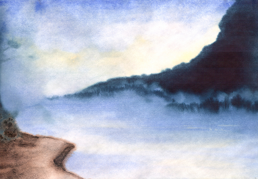Они вышли в ту часть леса, где деревья росли реже, и подошли к обрыву. Непроглядная чаща осталась стоять позади них, а прямо перед ними, далеко внизу, раскинулась долина, полная холмов и темных густых рощ, утопающая в плотном синеватом тумане. Они остановились и несколько минут молча смотрели на открывшуюся им красоту.