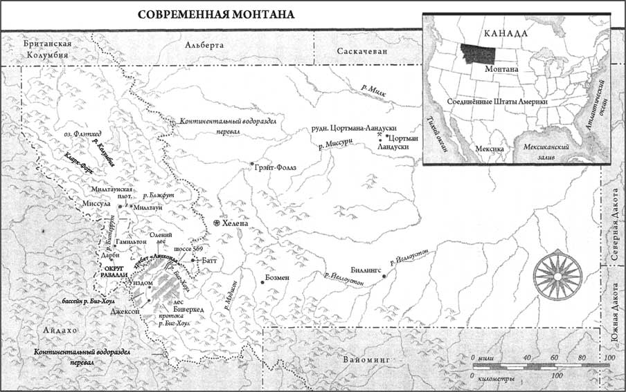 Монтана вообще и долина Битеррут на ее юго-западе в частности – настоящая страна парадоксов. Среди 48 штатов она третья по величине, но шестая с конца по численности населения и, следовательно, вторая с конца по его плотности. Сегодня долина Битеррут пышно заросла дикой растительностью, в частности полынью. Округ Равалли, в котором расположена долина, так красив и привлекает столько туристов из других штатов (и даже из других районов Монтаны), что стал одним из самых быстроразвивающихся в стране, хотя 70 процентов получивших высшее образование молодых людей уезжают из долины, а большинство покидает и Монтану. Численность населения в долине растет, но в Восточной Монтане она падает, так что для штата в целом ситуация остается ровной. В последнее десятилетие среди жителей округа Равалли резко возросло число пятидесятилетних, зато число тридцатилетних заметно упало. Некоторые очень богатые люди недавно построили в долине дома, например магнат от торговли недвижимостью Чарльз Шваб и президент корпорации «Интел» Крэйг Баррет, но, несмотря на это, Равалли – один из беднейших округов штата Монтана, который, в свою очередь, является одним из самых бедных штатов США. Многие жители штата вынуждены трудиться на двух-трех работах, чтобы дотянуть до официально установленного в стране уровня бедности.