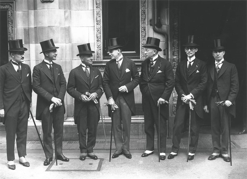 81 В противовес молодежной моде на повседневную одежду, эти более зрелые джентльмены, гости праздничного вечера Американского легиона в сентябре 1923 года, с радостью оделись в предписанную дресс-кодом официальную визитку.