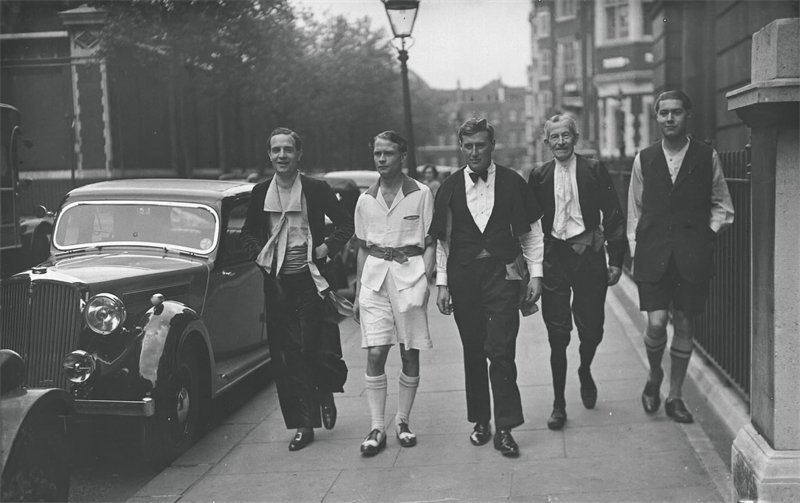83 Члены Партии за реформу мужской одежды в Лондоне в июле 1937 года. Мужчины – все они одеты по форме, одобренной партией, – принимали участие в конкурсе костюмов, результаты которого были опубликованы в журнале The Listener 14 июля 1937 года. Второй слева мужчина получил приз за свой ансамбль.