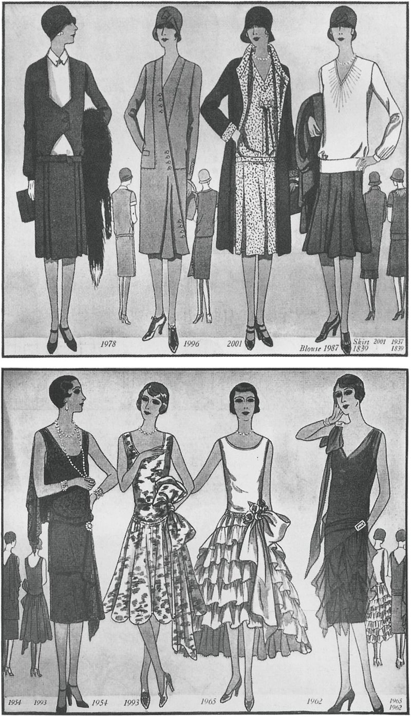 Главной модной особенностью 1929 года стало резкое увеличение длины одежды в зимних коллекциях – изменение, которое многие приписывают Пату. Часто утверждается, что длина юбок отражает экономическую ситуацию и что в трудные времена юбки становятся длиннее, но к этой теории следует относиться с осторожностью. Зимние коллекции 1929 года были разработаны и изготовлены задолго до краха фондовой биржи Уолл-стрит 24 октября 1929 года, который в одночасье привел к банкротству мультимиллионеров и крупных международных компаний и положил внезапный конец эпохе «ревущих двадцатых».