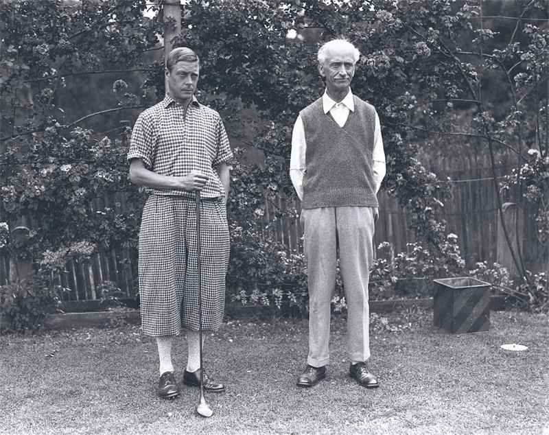 88 Принц Уэльский (слева) с неизвестным мужчиной, 1933 год. Одеваясь для игры в гольф – своего любимого вида спорта, принц позволял себе экспериментировать с цветом и узором. Он свободно и очень уверенно смешивал крапинку, клетку и шотландку, часто самых ярких цветов.
