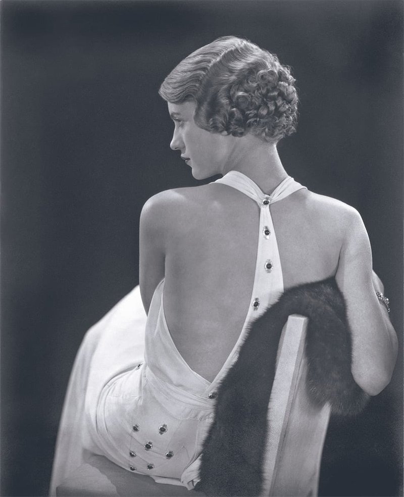 92 Американская фотомодель Ли Миллер в объективе Георгия Гойнинген-Гюне, Париж, 1930 год. На ней белое вечернее платье от Вионне, приковывающее взгляд к спине. Позже Миллер и сама стала успешной журналисткой и фотографом.