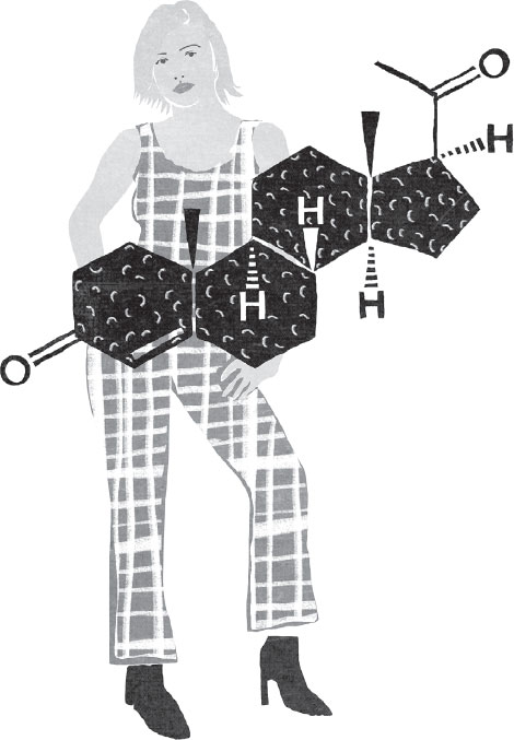 Наш гормон, Люси Лью, он же тестостерон, вырабатывается в яичниках, а также в коре надпочечников (позже ты поймешь, почему это важно). Тестостерон вырабатывается одновременно с эстрогеном, его количество колеблется в течение цикла аналогично уровню эстрогена, но не так интенсивно. Тестостерон помогает наращивать мышцы и улучшает обмен веществ: за счет него интенсивнее сжигаются сахара, и мы не так быстро набираем вес. В женском организме тестостерон отвечает за энергичность, атлетическую фигуру, решительность, способность настоять на своем и за либидо. Так как его выработка связана с эстрогеном, содержание тестостерона в организме вырастает к моменту овуляции, и в нас вспыхивает огонь, заставляющий чувствовать себя особенно сексуальной в этот момент цикла. Помимо этого, именно в период овуляции мы наиболее склонны к общению, поездкам, посторонние люди кажутся нам интереснее, мы более ярко реагируем на понравившегося мужчину или показавшийся сексуальным запах.