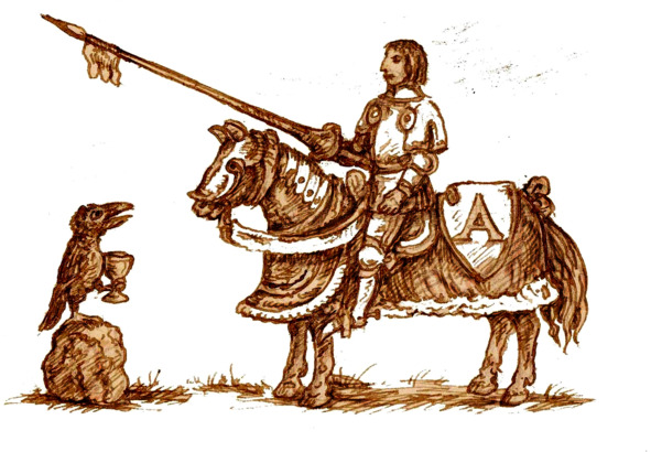 Скачет Артур и видит – у дороги ворон на камне, как вроде гриб какой пристроился, а в клюве кубок златой держит.