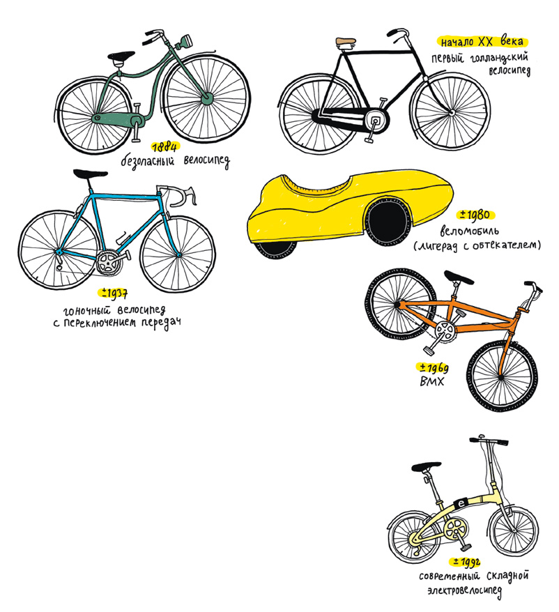 Многие изобретения могут побороться за титул лучшего в истории. Колесо, например. И очки. И карандаш. Мороженое в вафельном стаканчике. Смартфон. Видеопленка. Стул. Плюшевый мишка. Подгузники. Школа. Что? Да-да, она самая. Компьютерные игры. Лампа. Интернет. Книга. Список бесконечен. Тут, конечно, есть о чем поспорить. Но зачем, если существует одно изобретение, которое уверенно выйдет в победители? Это велосипед. Когда в 1817 году появилась первая его версия, люди распахнули от удивления рты – и с тех пор так и не закрывали. Ведь прежде никто и подумать не мог о том, чтобы вот так, друг за другом, катиться на двух колесах! Причем катиться очень быстро благодаря силе мышц. И к тому же преодолеть гравитацию и добиться удивительного равновесия. Велосипед наполнил нашу жизнь новым смыслом, задал ритм и направление: вперед, вперед!