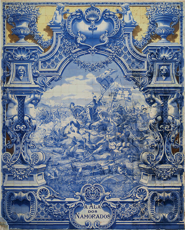 Панель из глазурованной плитки от Хорхе Коласо (1922), представляющая эпизод битвы при Альжубарроте (1385) между португальской и кастильской армиями. Лиссабон, Павильян Карлос Лопес
