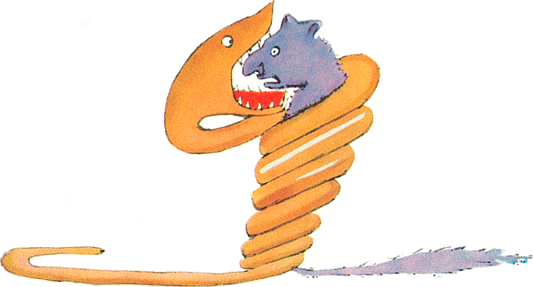У книжці було написано: «Удав ковтає свою жертву цілою, не жуючи. Після цього він не може й ворухнутися, спить безпробудно півроку, аж поки перетравить їжу».