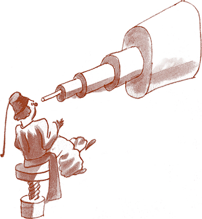 Він все дивився на мене: забруднений мастилом, з молотком в руках, я нахилився над незрозумілим предметом, який здавався йому таким потворним.