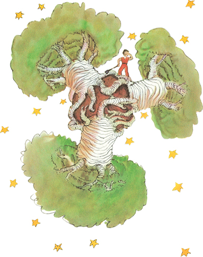 Я заперечив, мовляв, баобаби – не кущі, а величезні дерева заввишки з дзвіницю, і якщо він приведе навіть ціле стадо слонів, їм не з’їсти і одного баобаба.