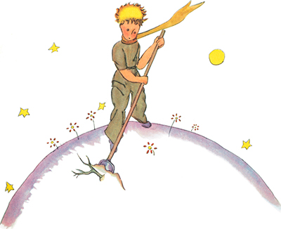 На планеті Маленького принца, як на всіх інших планетах, ростуть трава і бур'ян. А отже, є там добре насіння корисного зілля і погане насіння шкідливого зілля, бур'яну. Але ж те насіння невидиме. Воно спить, сховане під землею, поки одне якесь не надумає прокинутися. Тоді воно пускає паросток; він розправляється і тягнеться до сонця, спершу такий милий, нешкідливий. Якщо це майбутній редис або кущ троянди, хай собі його росте на здоров'я. Але якщо це якийсь бур'ян, треба вирвати його з корінням, щойно його впізнаєш. На планеті маленького принца було жахливе насіння… Це насіння баобабів. Ґрунт планети був геть ним уражений. А якщо баобаб не розпізнати вчасно, то вже ніколи його не позбудешся. Він заволодіє усією планетою. Він прониже її наскрізь своїм корінням. І якщо планета дуже маленька, а баобабів забагато, вони розірвуть її на клаптики.