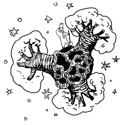 Пришлось рисовать планету, следуя указаниям Маленького принца. Не люблю поучать, но никто не знает, насколько опасны баобабы, вот и приходится мне, отказавшись от правила не учить никого, воскликнуть: «Дети! Берегитесь баобабов!» Надо предупредить друзей, ничего не знающих о грозящей опасности. Прежде и я о ней не знал. Пришлось потрудиться, так было нужно. Спросите, отчего нет в книжке других рисунков, подобных этому? Отвечу просто: «Хотел повторить, не получилось. Когда рисовал баобабы – понимал, что это важно».