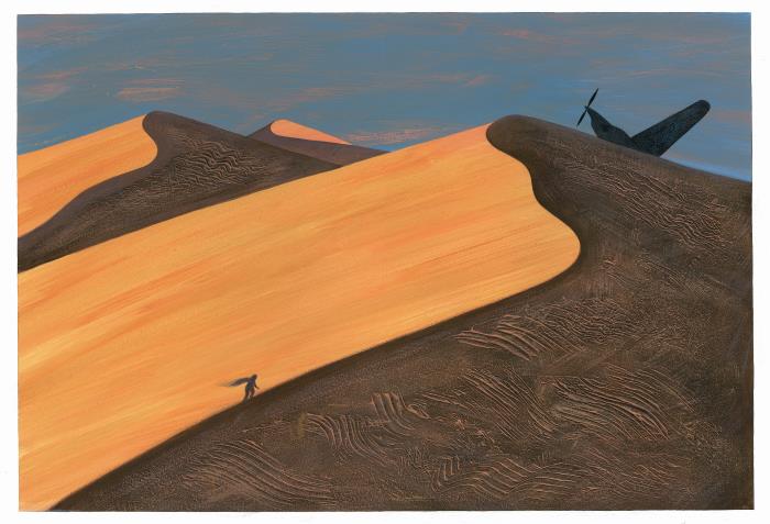 2Так я жил в одиночестве, и не с кем мне было поговорить по душам. И вот шесть лет тому назад пришлось мне сделать вынужденную посадку в Сахаре. Что-то сломалось в моторе моего самолёта. Со мной не было ни механика, ни пассажиров, и я решил, что попробую сам всё починить, хоть это и очень трудно. Я должен был исправить мотор или погибнуть. Воды у меня едва хватило бы на неделю.