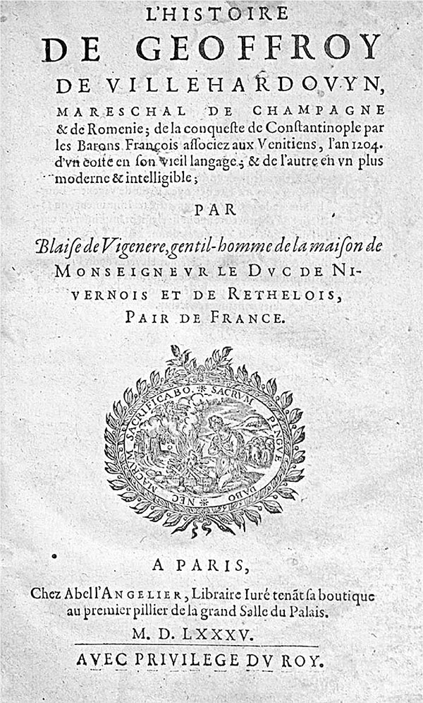 Титул книги де Виллардуэна, изданной в 1585 г.