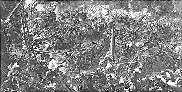 Тотчас графы и бароны и те, кто держал их сторону, переговорили между собой и сказали: «Они нанесли нам дерзкое оскорбление, те, кто порушил это соглашение; и не проходило еще ни одного дня, когда бы они ни старались разъединить эту рать. Мы опозорены, коли не поможем взять город». И они пришли к дожу и сказали ему: «Сеньор, мы пособим вам взять город назло тем, кто воспротивился этому»[222].
