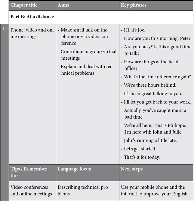 This part has tips and suggestions on how to improve your general communication strategies. There is also a special focus on body language and how to spell out names and email addresses.