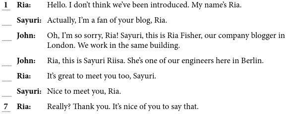 2 John is talking to Sayuri when Ria joins them. Put the dialogue in the correct order.