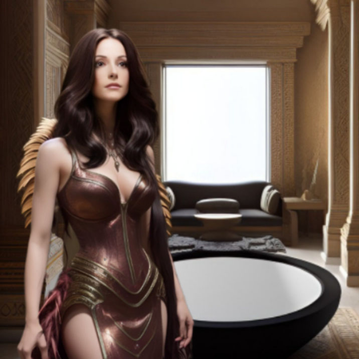 Отражение в зеркале снова сменилось. Теперь Хейлиин отражалась в зеркале в красивом вышитом лифе, короткой юбочке-шортах и широким кожаным поясом с креплениями для поводка латаса. Челгаан торжествовал. Хейлиин была так сексуальна, что он был уверен: мужчины всего города будут ночью мять подушки, представляя её тело в своих самых пошлых грезах.