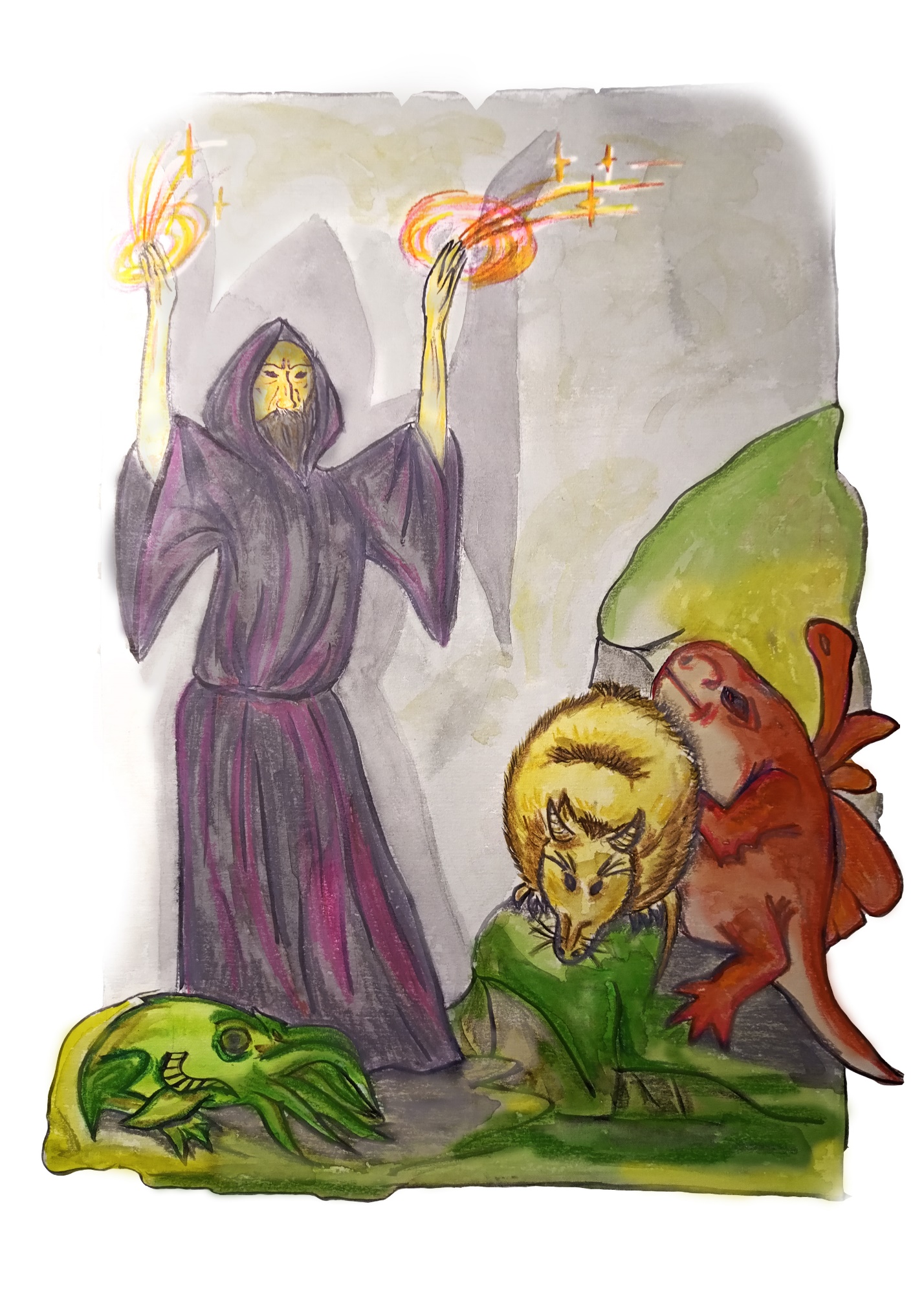 – Чародей любил эксперименты, а потому с помощью волшебства стал скрещивать различных животных, создавая совершенно невероятные, новые виды. Так появились птицерыбы, лисозавры, кротомонстры…