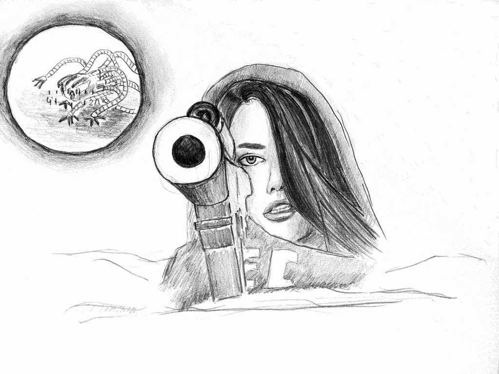 Но по-прежнему продолжала осматривать. Только уже не ходила по всему периметру, а затаилась на том же самом месте, где присела отдохнуть. Прошло еще полчаса. Я уже не смотрела в оптический прицел. Просто наблюдала невооруженным глазом. Как вдруг в соседнем квартале с левой стороны заметила какое-то движение. Взглянула в прицел и увидела необычного робота. По своему строению он напоминал осьминога с огромным количеством глаз, как у паука. На концах множества конечностей были острые трезубья. Я поняла, что это охотник. Это было понятно с первого взгляда.