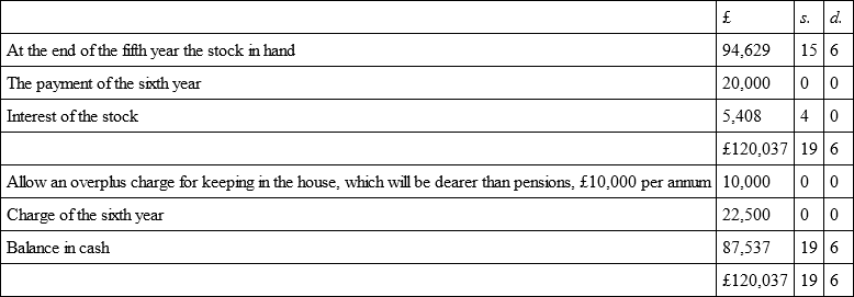 By this computation the stock is increased above the charge in five years £89,379 15s. 6d.; and yet here are sundry articles to be considered on both sides of the account that will necessarily increase the stock and diminish the charge: