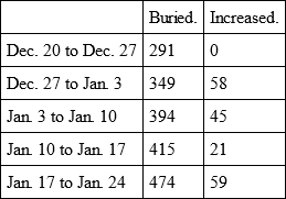 Besides this, it was observed, with great uneasiness by the people, that the weekly bills in general increased very much during these weeks, although it was at a time of the year when usually the bills are very moderate.
