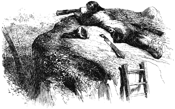 Просидев так еще несколько времени и истощив свое воображение, я не в силах был выносить долее неизвестность и полез на гору способом, описанным выше, то есть при помощи лестницы, приставляя ее к уступу горы, спускавшейся в мою сторону. Добравшись до самой вершины, я вынул из кармана подзорную трубу, которую захватил с собой, лег животом на землю и, направив трубу на то место берега, где я видел огонь, стал смотреть. Я увидел человек десять голых дикарей, сидевших кружком подле костра. Конечно, костер они развели не для того, чтобы погреться, так как стояла страшная жара, а, вероятно, затем, чтобы состряпать свой варварский обед из человечьего мяса. Дичина, наверно, была уже заготовлена, но живая или убитая – я не знал.