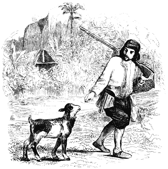 Во время этого путешествия моя собака вспугнула козленка и бросилась на него, но я успел вовремя подбежать и спас его от собачьих клыков. Мне захотелось взять его с собой; я давно уже мечтал приручить пару козлят и развести стадо ручных коз, чтобы обеспечить себя мясом к тому времени, когда у меня выйдут все запасы пороха и дроби.