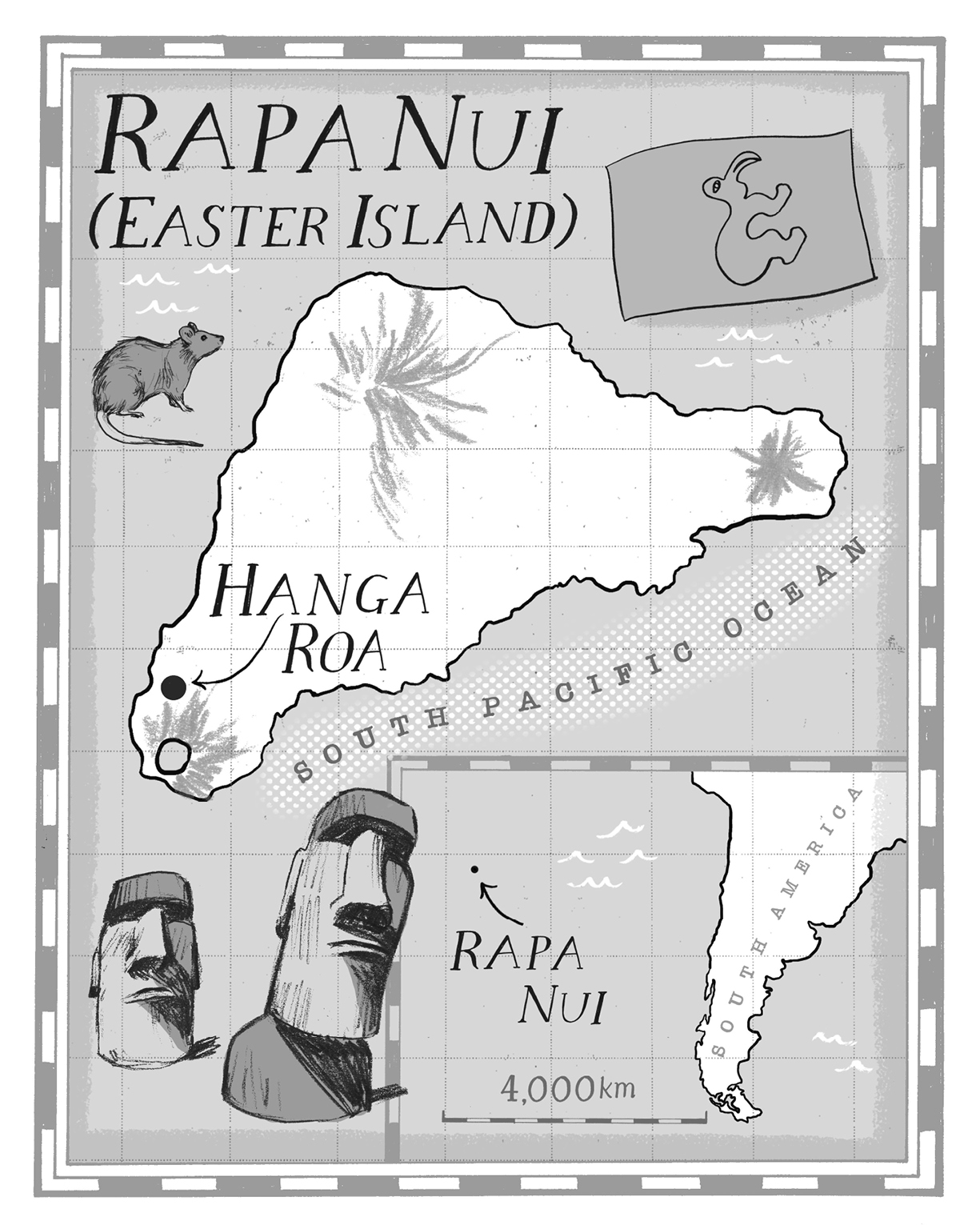 The origin myths of the indigenous Rapa Nui people tell of a primeval being called Makemake who failed to have sex with first a gourd, then a stone, but got lucky with a mound of soil, out of which emerged a human. Radiocarbon dating and mitochondrial DNA suggest a more recent Polynesian origin for the Rapa Nui, who seem to have emigrated to the island about 800 years ago. These first settlers soon settled down into two warring clans: the Tu’u to the west and the ’Oto ’Itu to the east. Each clan erected their own examples of the famous giant-headed moai sculptures, and then did their best to knock the other side’s efforts down.* Even when stuck in the middle of the ocean, humans will still find a way to disagree with approximately 50 per cent of their neighbours over some stupid thing.