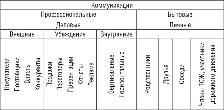 Все множество коммуникаций по области реализации может быть поделено на два больших класса: «деловых» \ «профессиональных» и «бытовых» \ «личных».