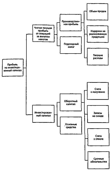 Газета, выпускаемая Dell для своих сотрудников во всем мире, в 1995 году опубликовала эту схему, наглядно демонстрирующую факторы, влияющие на размер прибыли на инвестированный капитал.