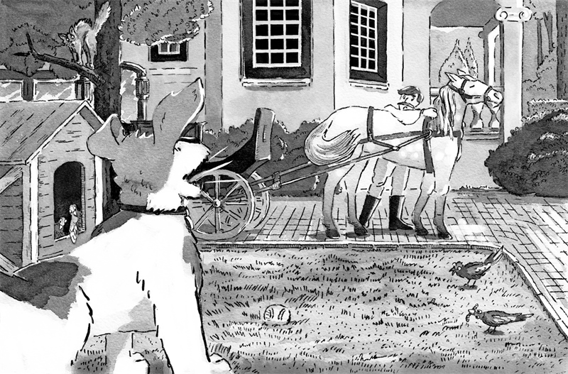 Я был ужасно зол на Али: он просто окружил меня своей тиранической заботой! Это сильно ранило мое самолюбие. Насупившись, я уселся на солнышке перед своей будкой и с грустью положил голову на вытянутые лапы. Дейзи была впряжена в легкую двухместную коляску и ждала, пока спустится хозяин. Она видела всю сцену, заметила, как я рассержен, поняла почему и смотрела на меня с пренебрежением. В любой другой ситуации я бы тоже просто взглянул на нее пренебрежительно. Но сейчас я был совсем не в духе.