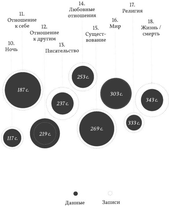 Нужно отобрать и систематизировать важное, будь то основные элементы или незначительные, но говорящие нам о многом детали; составить список, выстроить стороны жизни без всяких ограничений: практическую, экзистенциальную, интимную, физическую, психическую. Нужно копаться в себе, снова освежать память, извлекать данные, показывать их, сравнивать, представлять их графически – чтобы сделать их понятнее, выявить их значимость в перспективе.