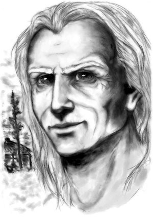 И никакой он не старик, кстати. Стала разглядывать. Под пятьдесят – точно, но крепок телом, статен и легок в движениях. Рост чуть выше среднего, не атлет, но весь плавный, текучий. Опасный боец, наверное. Вон, притащил пару бадеек воды, и не шелохнется она, даже кругов по поверхности нет, хотя шел быстро, а из-за угла вывернулся одним махом. Ставить не торопится, да и дышит легко. Волос странный, пепельный со светлыми прядями, то ли седыми, то ли вылинявшими под солнцем – не поймешь. Бороды и усов нет, загар многолетний, морщинки некрупные, кожа светлее во впадинках. Кажется, будто он только что смеялся, вот лучики у глаз и остались. Сами глаза удивительные – чистые, глубокие, почти черные омутищи с невероятными серебряными стрелками-нитями, разбегающимися от зрачка к радужке.
