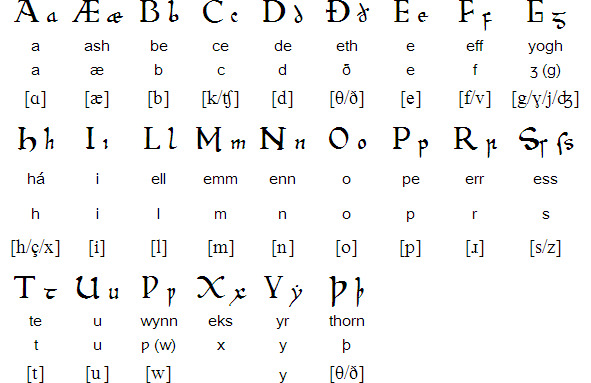 Отдельно и обязательно надо сказать про древнеанглийский алфавит. В латинском алфавите не было некоторых букв, необходимых для записи английских звуков, поэтому алфавит был дополнен.