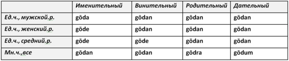 Сравнительная степень образовывалась прибавлением окончания -ra (сейчас -er), а превосходная – окончания -ost (сейчас -est).