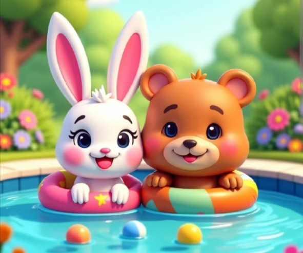 Зайцы любезно разместили медвежонка в комнате для гостей. Следующие два дня Реджи и Сеня провели вместе. Они лепили из пластилина, играли в прятки и резвились в бассейне. И всё было бы отлично, если бы не одно деликатное обстоятельство.