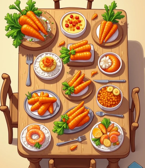 Каждое утро на завтрак зайцы ели морковные оладьи и пили свежевыжатый морковный сок. Обед традиционно состоял из трёх блюд: морковный суп на первое, вареники с морковью на второе и морковный пудинг на десерт. На ужин мама-зайчиха готовила морковное суфле и салат. Разумеется, тоже из моркови. Стоит ли упоминать, что и йогурт, и кисель, и даже варенье в этом доме готовили исключительно из этого оранжевого овоща. А Сеня не раз говорил, что с нетерпением ждал выходных. Потому что по субботам его мама пекла вкуснейший морковный пирог, а каждое воскресенье – славные морковные маффины.