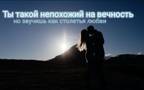 Ты такой непохожий на вечность,Но звучишь, как столетья любви,Ощущаю я только нежность,Докоснувшись до сильной руки.В тёплом сумраке наших объятийТы с безумством мне шепчешь слова,Шелестит на ветру моё платье,Ты касаешься нежно меня.В голове моей яростно бьётсяПульс любви и дыханье твоё.И душа от прохлады очнётся,И по ней растечётся тепло.Ты откроешься и заструитсяВ твоём теле любовь, как поток,И захочется просто влюбиться,И любви этой сделать глоток.Обнимая меня долгим взглядом,Я даю тебе сотни дорогТой любви, что сейчас с тобой рядом,И той жизни, в которой ты – Бог.31.08.2022