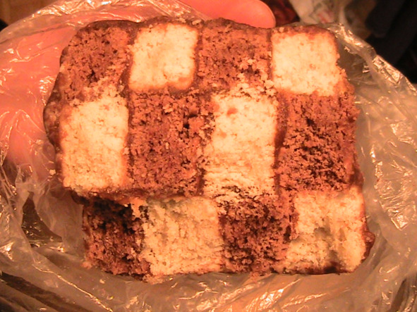 Им можно перекусить «по-ходу движения», перекусить «на ходу»: кусочком «шахматного пирога весом 200—300 грамм. Не больше! Вот такой кусочек потихоньку и съешь. Поедая «шахматный пирог» (так его буду называть: привык с детства!) ощущаю такую вот «гармонию ЖИЗНИ»: ведь жизнь, как и пирог, состоит из белых клеточек, и из чёрных, которые постоянно ЧЕРЕДУЮТСЯ МЕЖДУ СОБОЙ – на «Игровом поле ЖИЗНИ»!